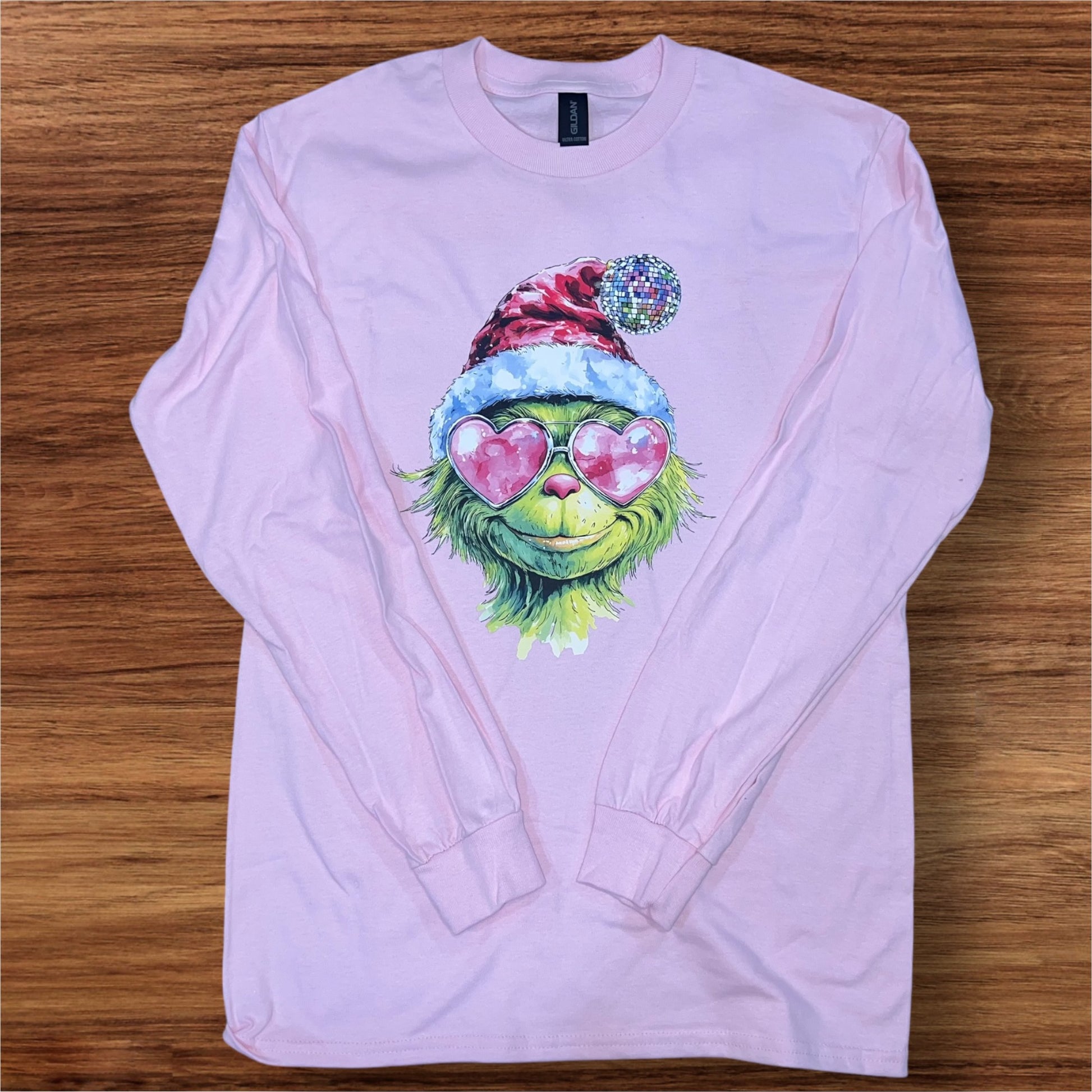 Elevate your style this holiday season with our Boujee Sparkle Grinch Long Sleeve. Made with durable fabric and a touch of shimmer, this top is perfect for any festive occasion. Stay cozy and chic with this must-have piece.